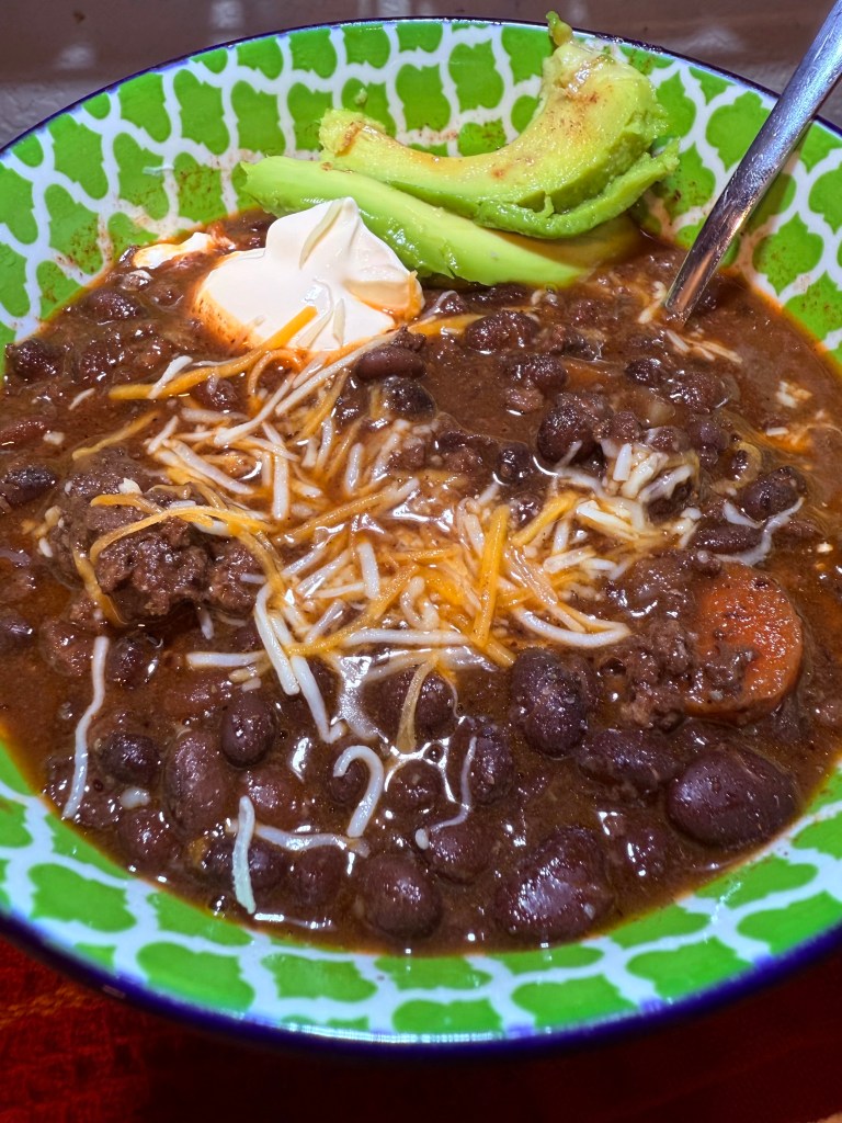 Whether you are opening a can of beans or presoaking the beans at least a couple hours while you work, go on a walk, or lull your baby to sleep, chili is a generous staple and one that is popular at our home lasting for days (or can be frozen for even more days later.)