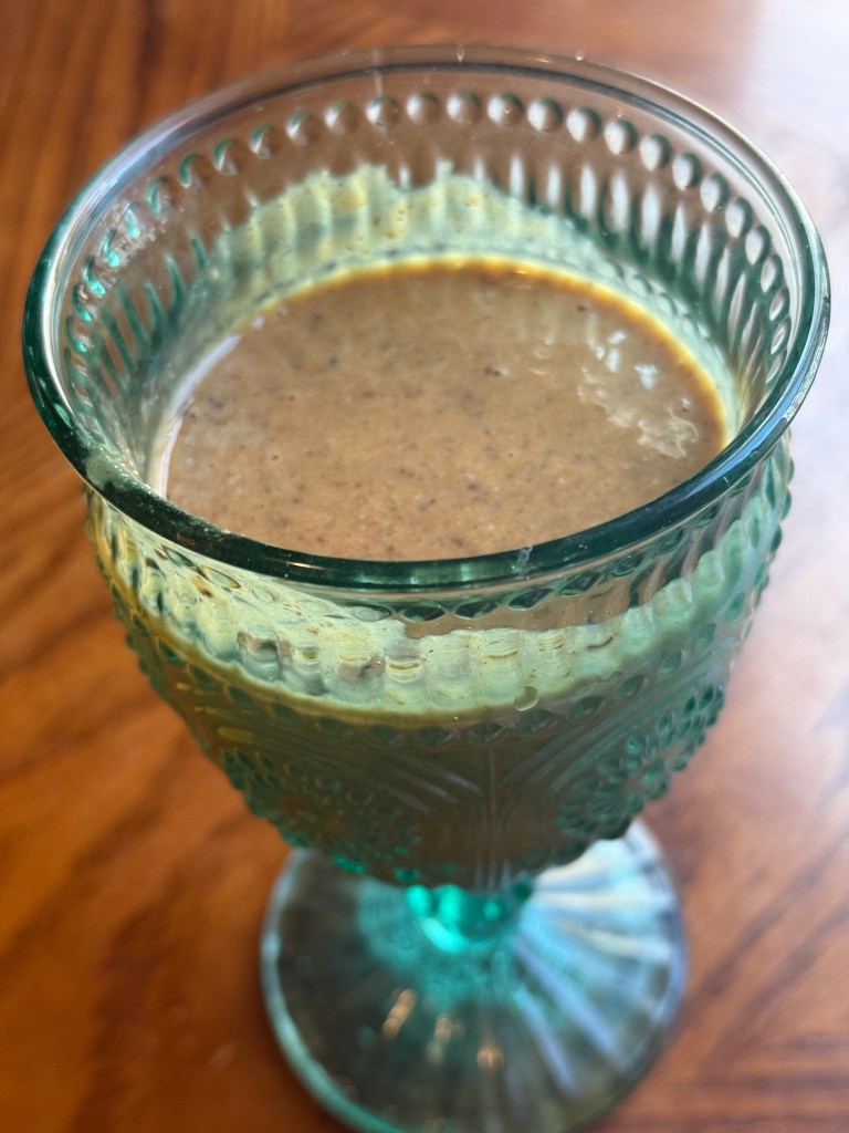 hemp milk, this collagen, 2 Brazil nuts, a few hazelnuts, bananas or fruit of choice, smidge of raw cacao nibs, goji berries, raw hemp seeds, a smidge of Maine Coast Sea Vegetables Kelp powder (not the salt- but actual bombastic kelp powder! It has tons of iodine so I just do a smidge!), raw flax seeds, a few drops of trace minerals, and chia seeds. This is a loaded gun of protein, iodine, and nutrients to keep you going to *maybe* match the supernova energetics of a toddler’s!