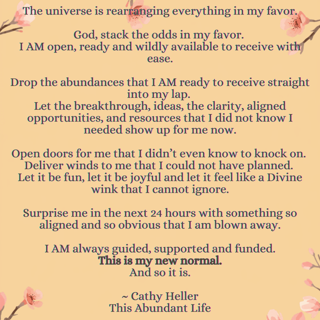 Recently, Cathy shared in our membership a morning and evening prayer designed to align you with divine support and attract blessings into your life.